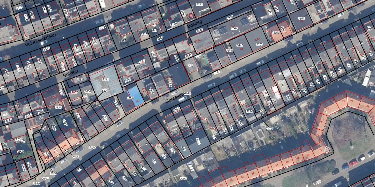 Gebruik de zoekbalk of klik op een perceel om informatie over het perceel te bekijken.