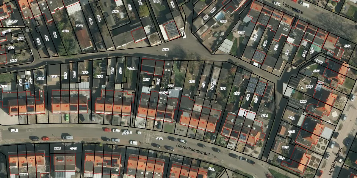 Gebruik de zoekbalk of klik op een perceel om informatie over het perceel te bekijken.