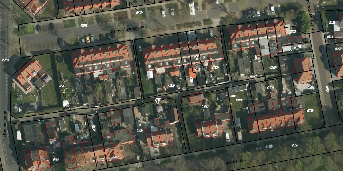 Gebruik de zoekbalk of klik op een perceel om informatie over het perceel te bekijken.
