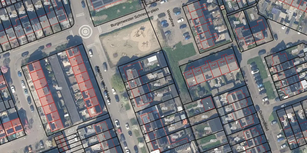 Gebruik de zoekbalk of klik op een perceel om informatie over het perceel te bekijken.