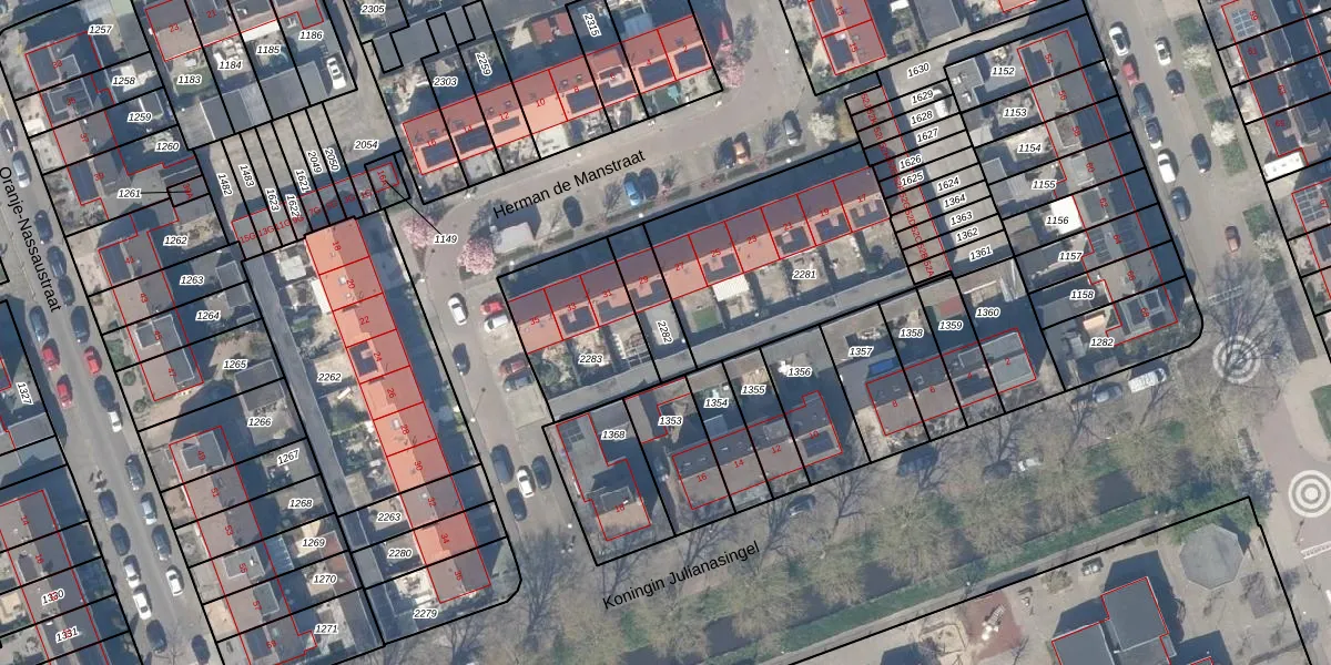 Gebruik de zoekbalk of klik op een perceel om informatie over het perceel te bekijken.