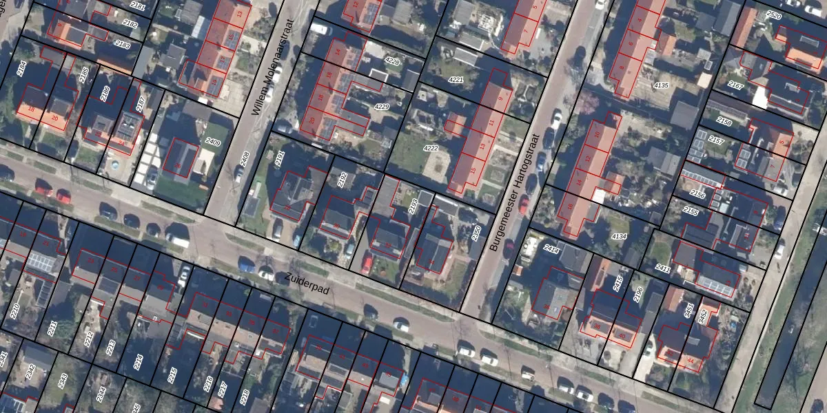 Gebruik de zoekbalk of klik op een perceel om informatie over het perceel te bekijken.