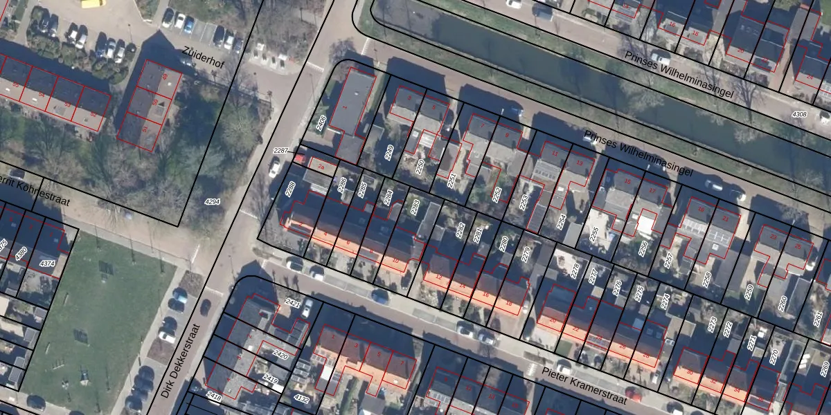Gebruik de zoekbalk of klik op een perceel om informatie over het perceel te bekijken.