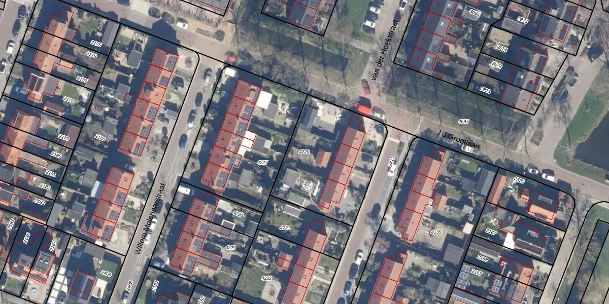 Gebruik de zoekbalk of klik op een perceel om informatie over het perceel te bekijken.