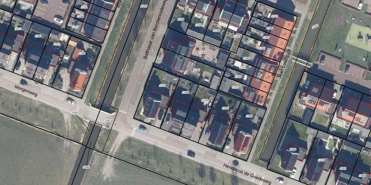 Gebruik de zoekbalk of klik op een perceel om informatie over het perceel te bekijken.