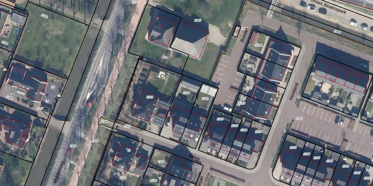 Gebruik de zoekbalk of klik op een perceel om informatie over het perceel te bekijken.