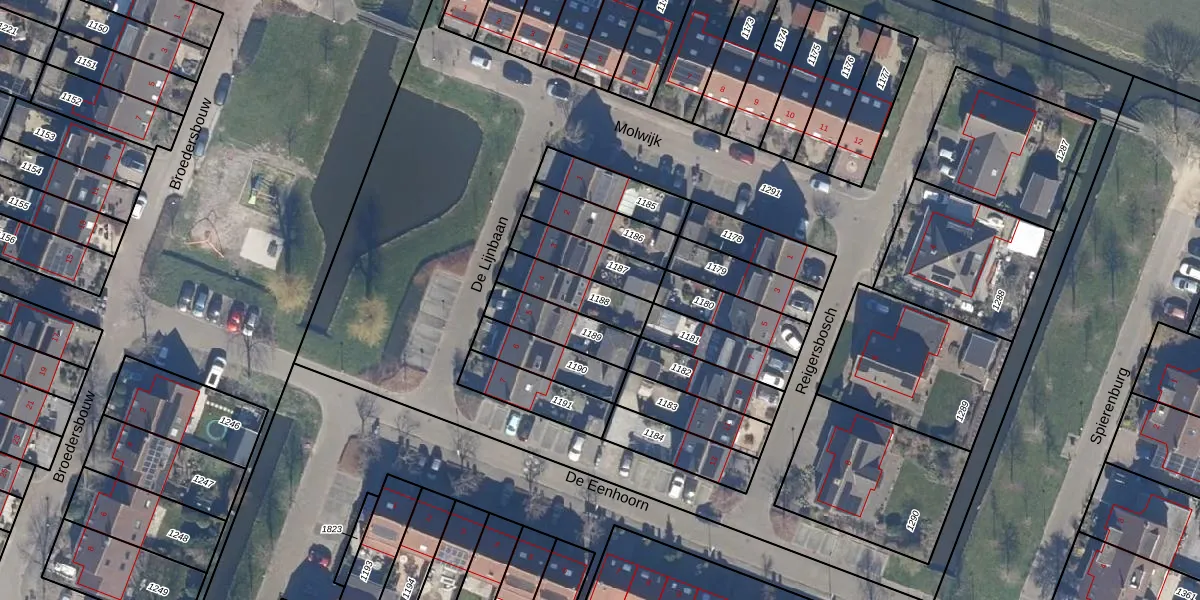Gebruik de zoekbalk of klik op een perceel om informatie over het perceel te bekijken.