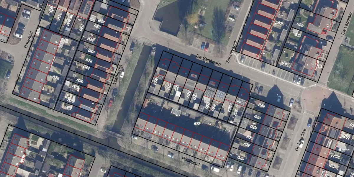 Gebruik de zoekbalk of klik op een perceel om informatie over het perceel te bekijken.