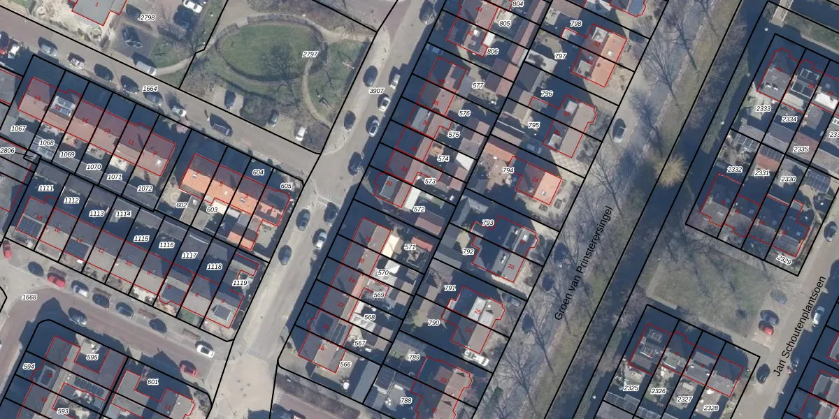 Gebruik de zoekbalk of klik op een perceel om informatie over het perceel te bekijken.