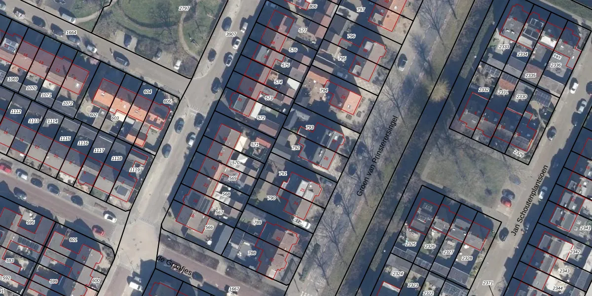 Gebruik de zoekbalk of klik op een perceel om informatie over het perceel te bekijken.