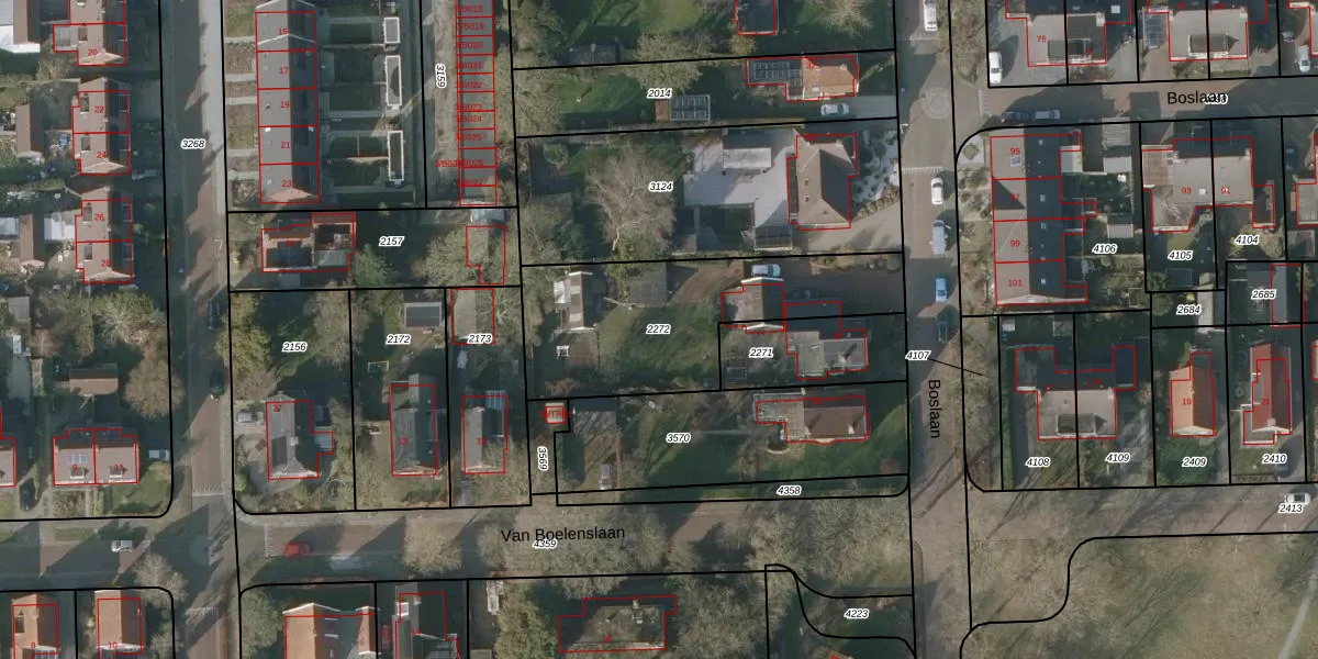 Gebruik de zoekbalk of klik op een perceel om informatie over het perceel te bekijken.
