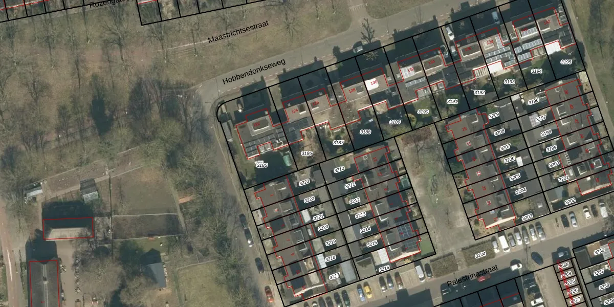 Gebruik de zoekbalk of klik op een perceel om informatie over het perceel te bekijken.