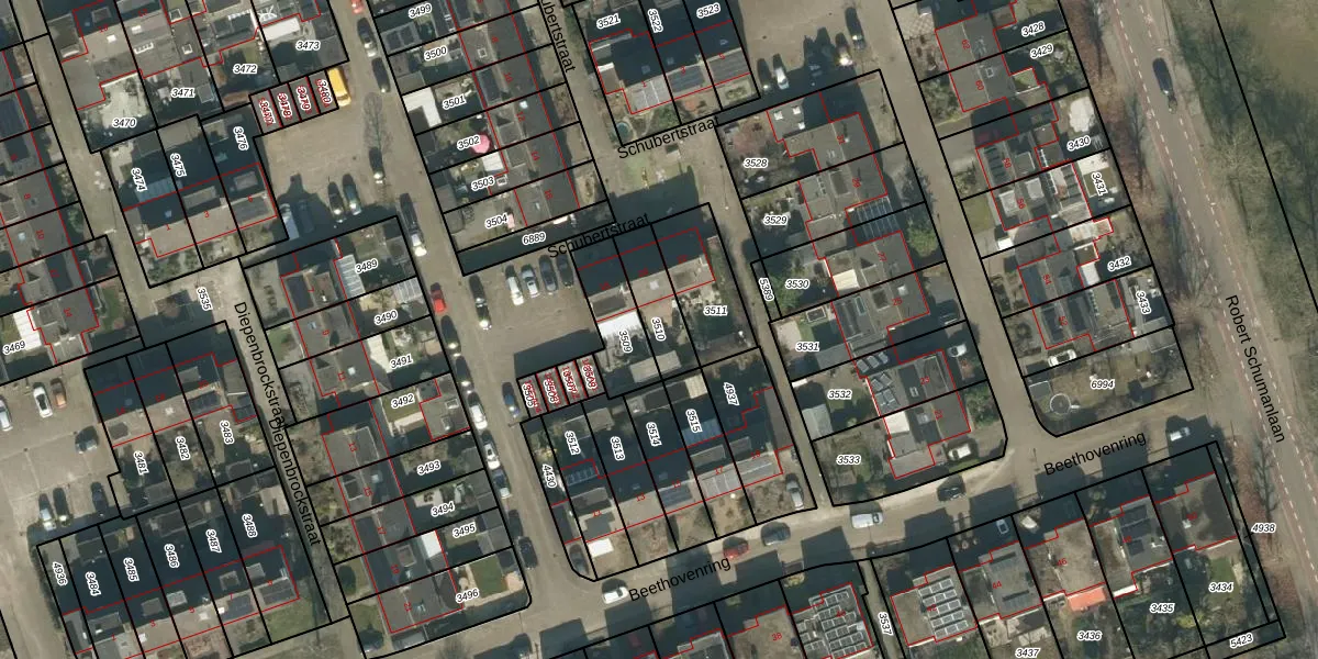 Gebruik de zoekbalk of klik op een perceel om informatie over het perceel te bekijken.