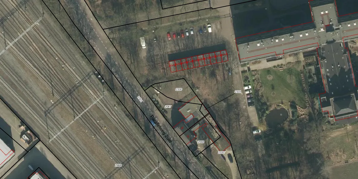 Gebruik de zoekbalk of klik op een perceel om informatie over het perceel te bekijken.