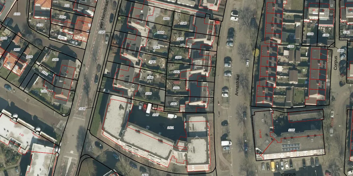 Gebruik de zoekbalk of klik op een perceel om informatie over het perceel te bekijken.
