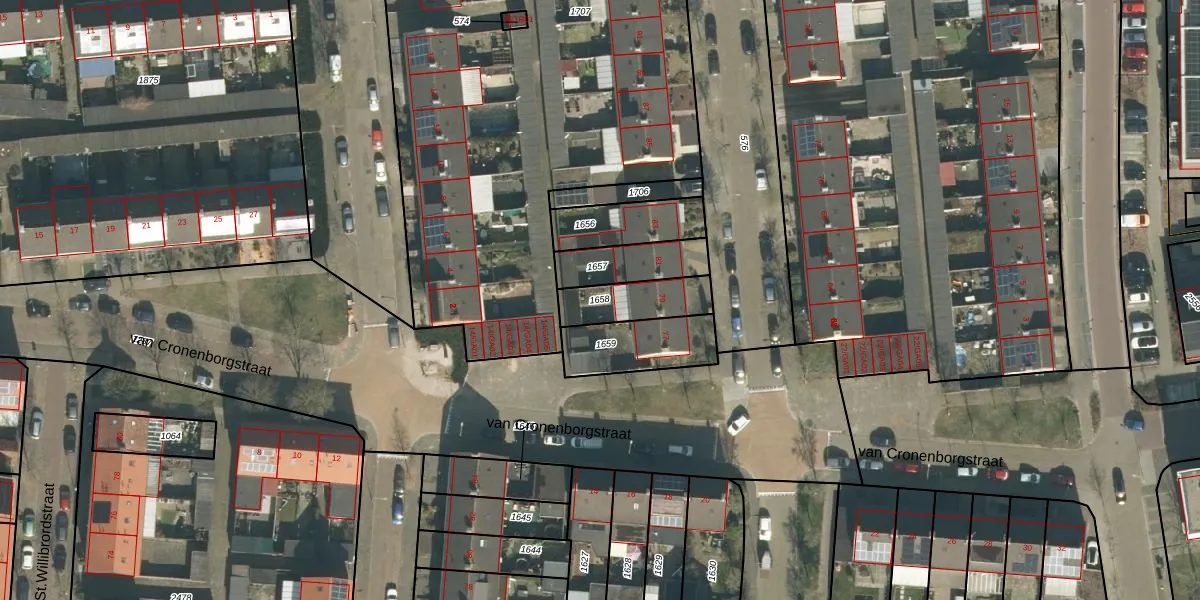 Gebruik de zoekbalk of klik op een perceel om informatie over het perceel te bekijken.