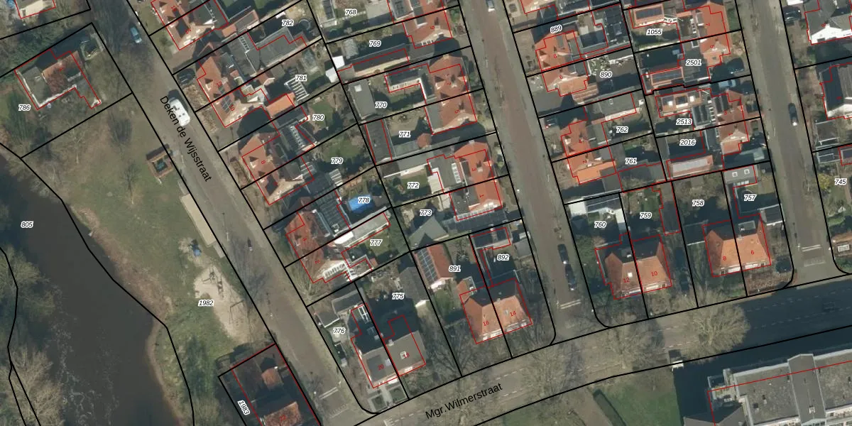 Gebruik de zoekbalk of klik op een perceel om informatie over het perceel te bekijken.