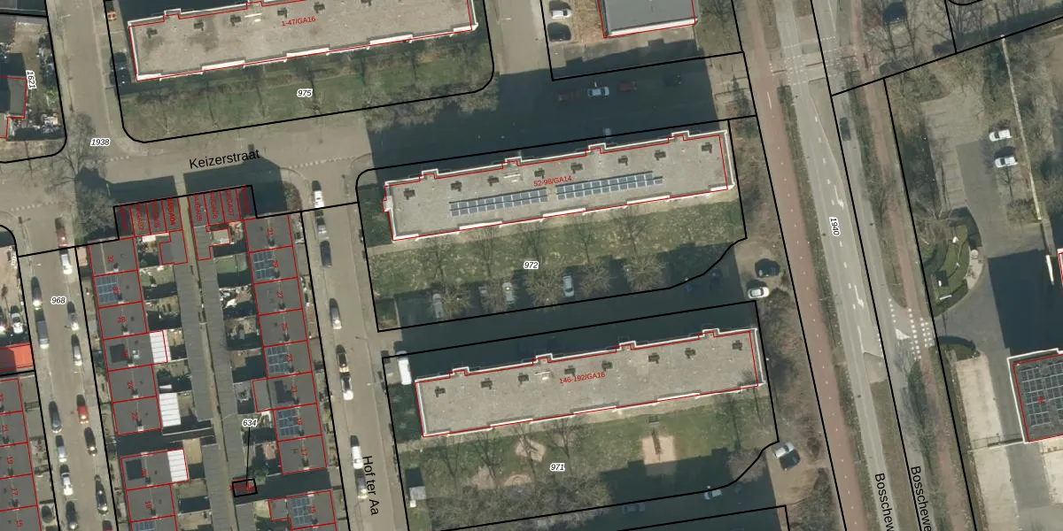 Gebruik de zoekbalk of klik op een perceel om informatie over het perceel te bekijken.