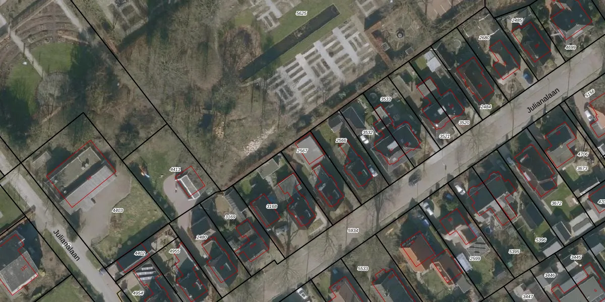 Gebruik de zoekbalk of klik op een perceel om informatie over het perceel te bekijken.