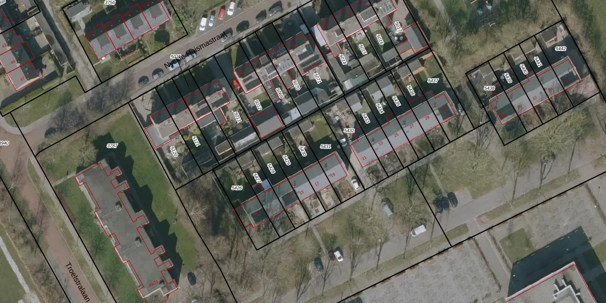 Gebruik de zoekbalk of klik op een perceel om informatie over het perceel te bekijken.