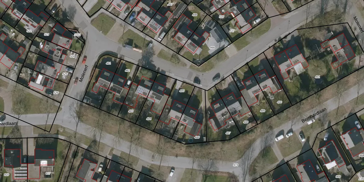 Gebruik de zoekbalk of klik op een perceel om informatie over het perceel te bekijken.