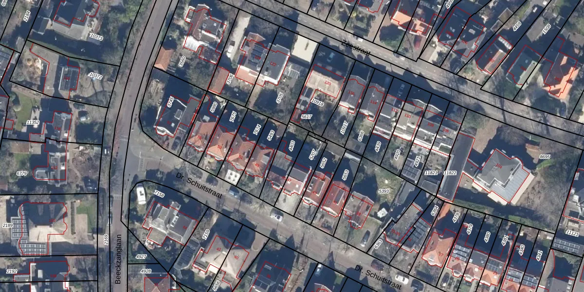 Gebruik de zoekbalk of klik op een perceel om informatie over het perceel te bekijken.
