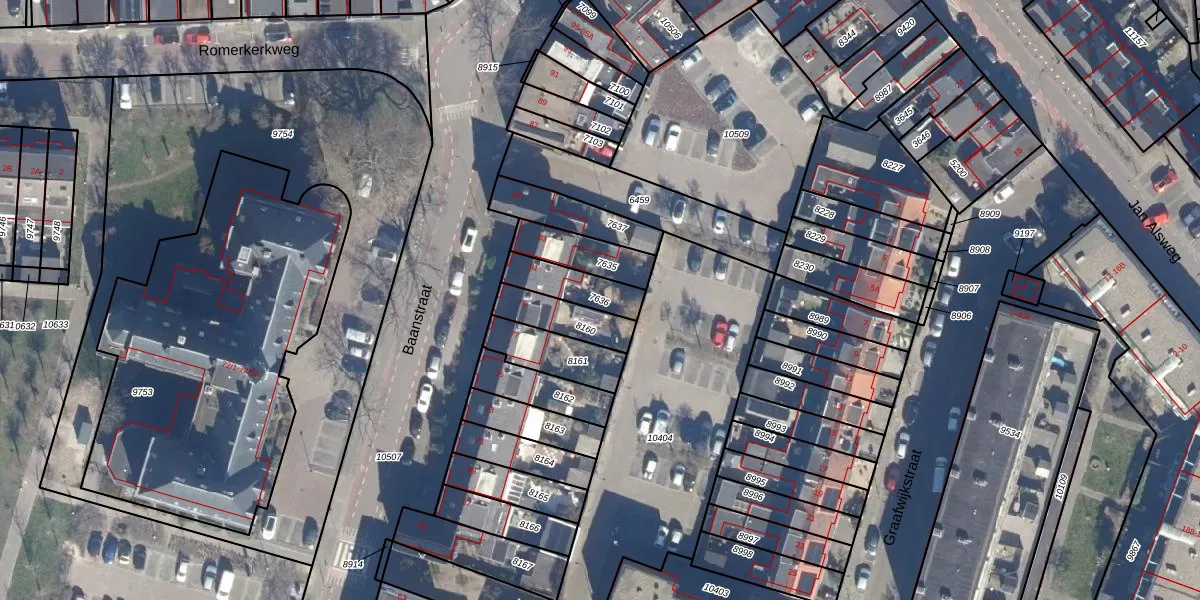 Gebruik de zoekbalk of klik op een perceel om informatie over het perceel te bekijken.