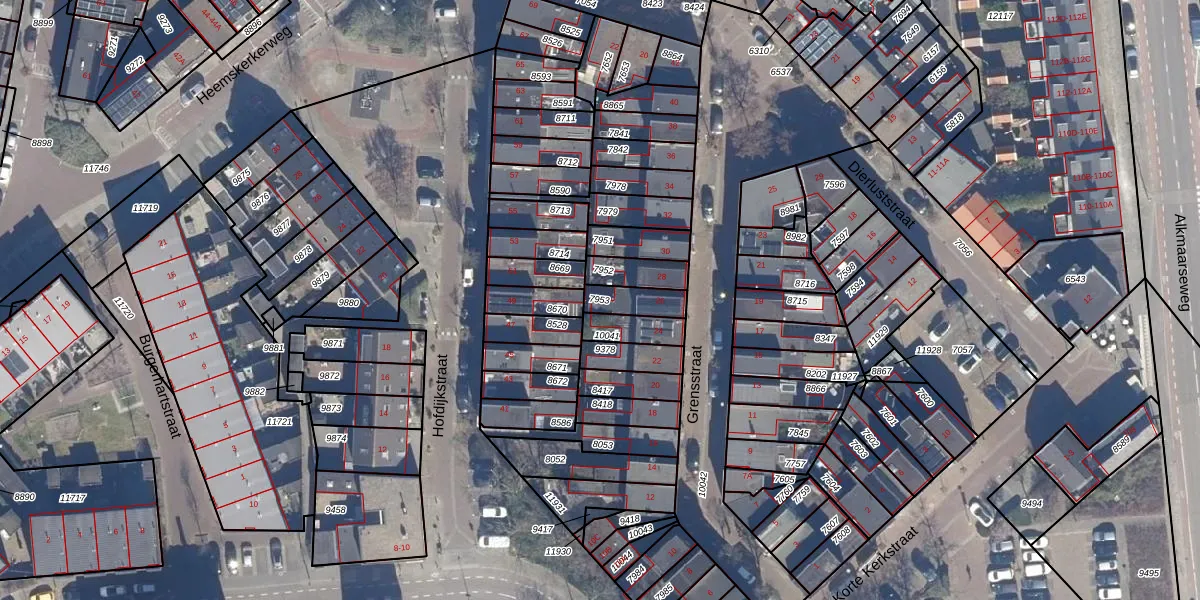 Gebruik de zoekbalk of klik op een perceel om informatie over het perceel te bekijken.