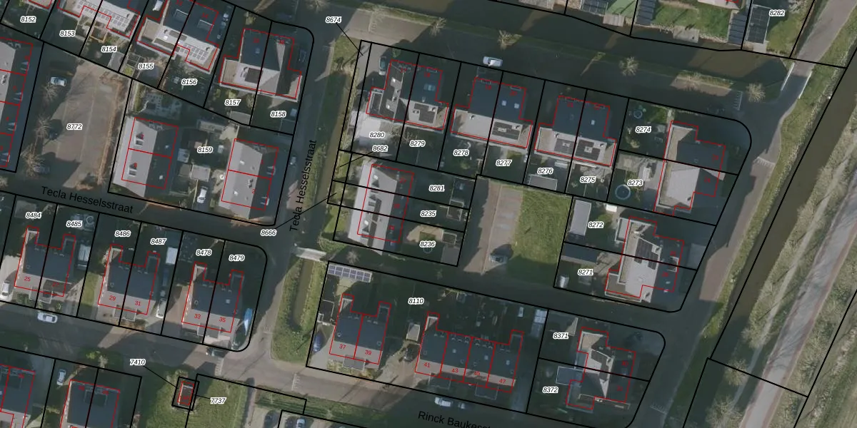Gebruik de zoekbalk of klik op een perceel om informatie over het perceel te bekijken.