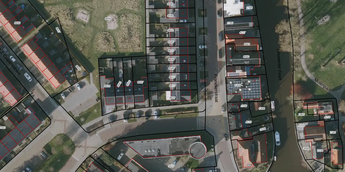 Gebruik de zoekbalk of klik op een perceel om informatie over het perceel te bekijken.