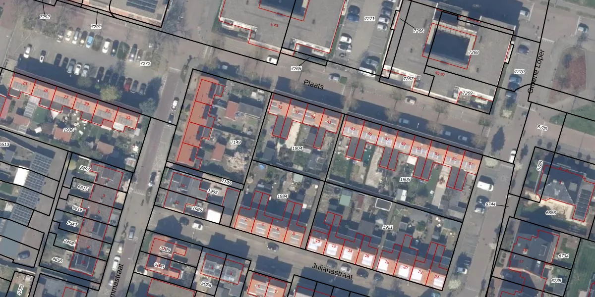 Gebruik de zoekbalk of klik op een perceel om informatie over het perceel te bekijken.