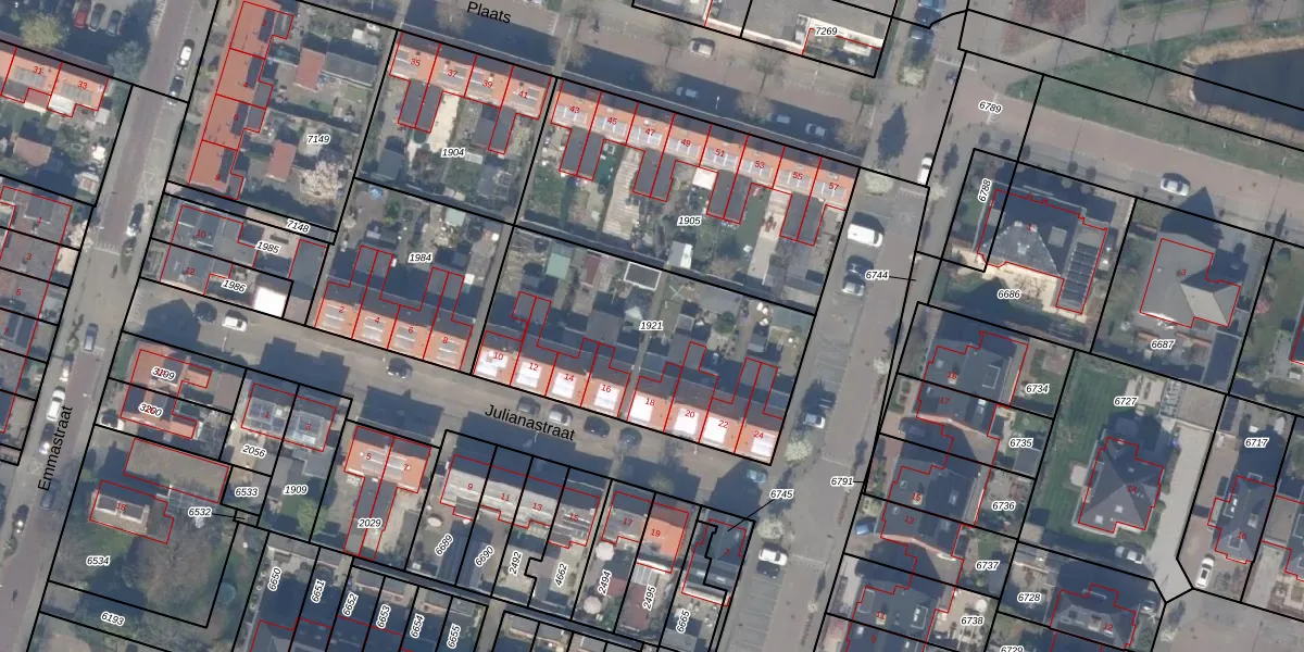 Gebruik de zoekbalk of klik op een perceel om informatie over het perceel te bekijken.