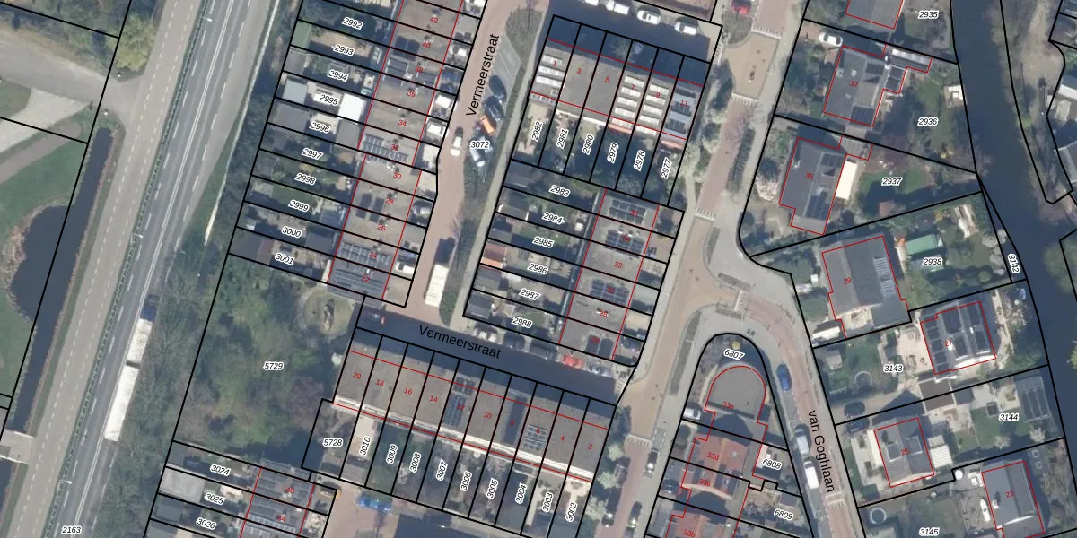 Gebruik de zoekbalk of klik op een perceel om informatie over het perceel te bekijken.