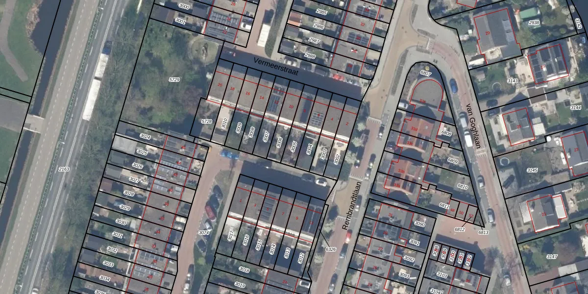 Gebruik de zoekbalk of klik op een perceel om informatie over het perceel te bekijken.