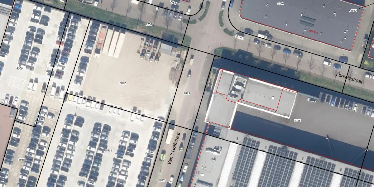 Gebruik de zoekbalk of klik op een perceel om informatie over het perceel te bekijken.
