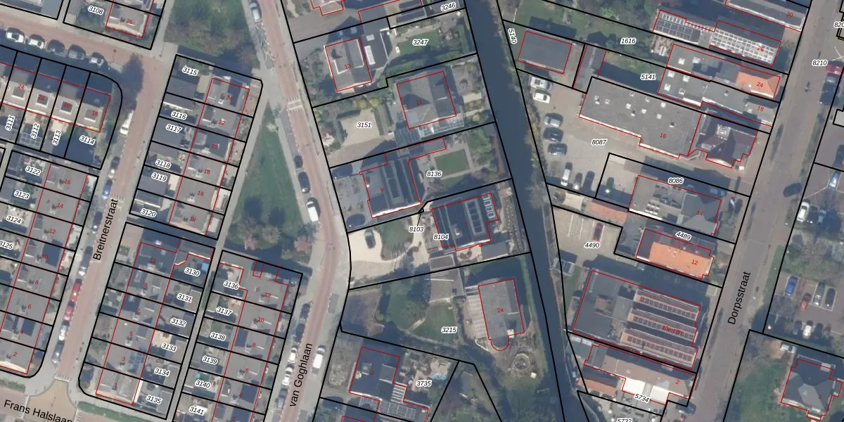 Gebruik de zoekbalk of klik op een perceel om informatie over het perceel te bekijken.