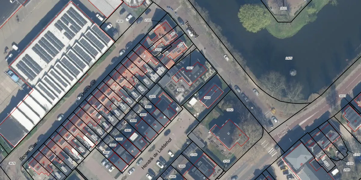 Gebruik de zoekbalk of klik op een perceel om informatie over het perceel te bekijken.