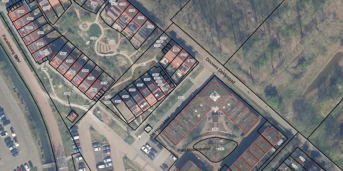 Gebruik de zoekbalk of klik op een perceel om informatie over het perceel te bekijken.