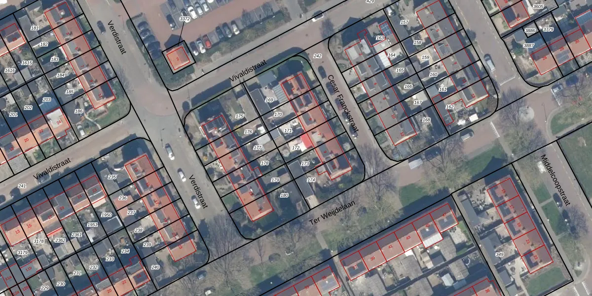 Gebruik de zoekbalk of klik op een perceel om informatie over het perceel te bekijken.
