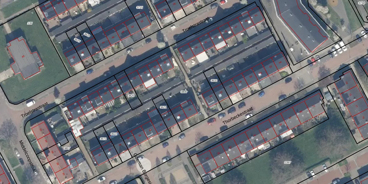 Gebruik de zoekbalk of klik op een perceel om informatie over het perceel te bekijken.