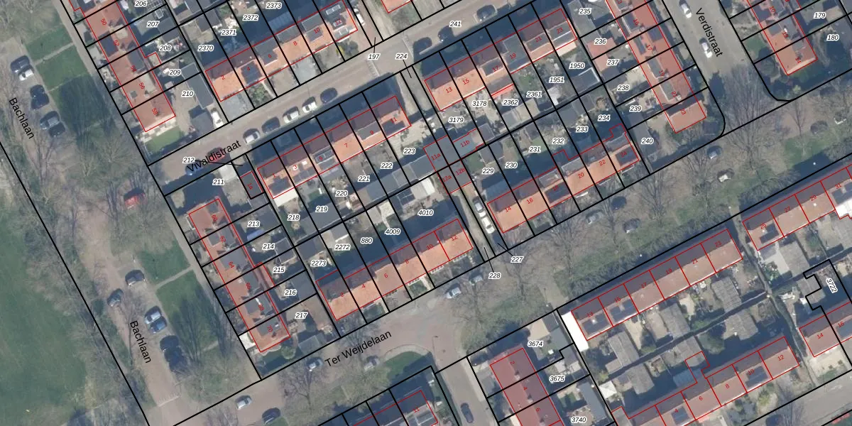 Gebruik de zoekbalk of klik op een perceel om informatie over het perceel te bekijken.