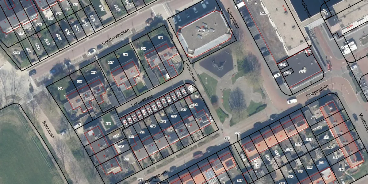 Gebruik de zoekbalk of klik op een perceel om informatie over het perceel te bekijken.