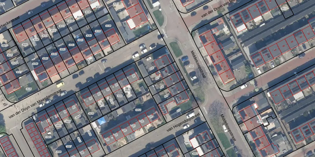 Gebruik de zoekbalk of klik op een perceel om informatie over het perceel te bekijken.