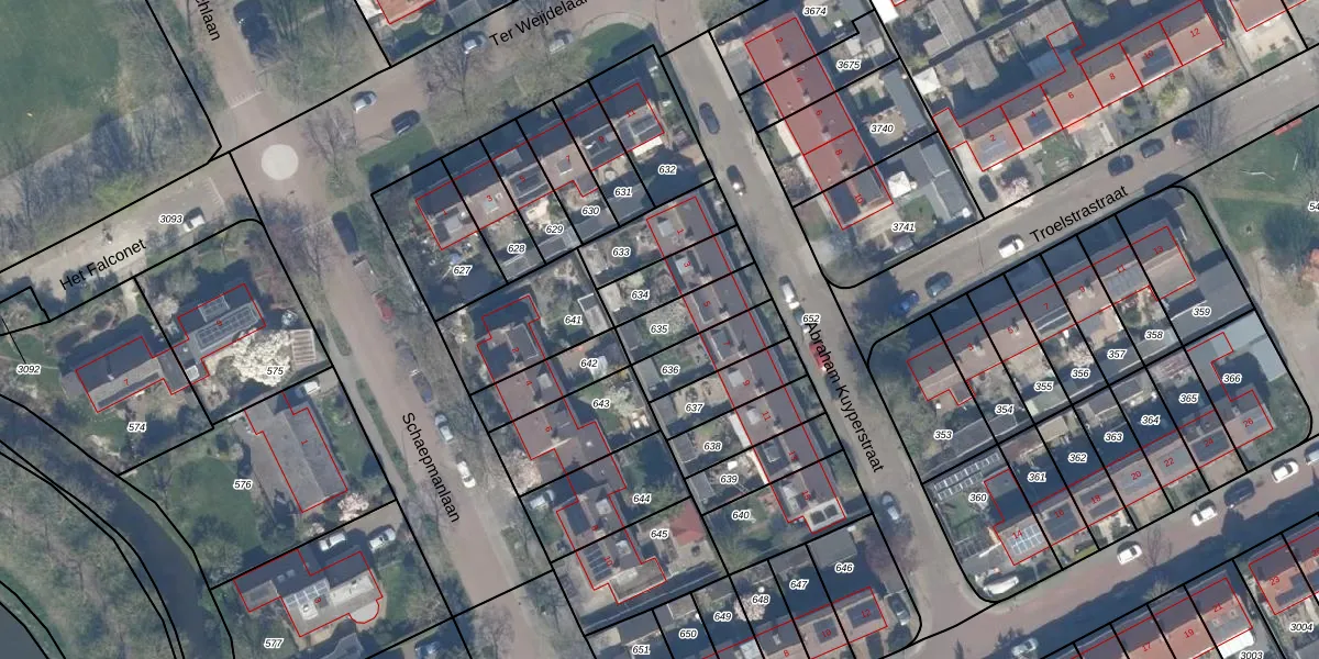 Gebruik de zoekbalk of klik op een perceel om informatie over het perceel te bekijken.