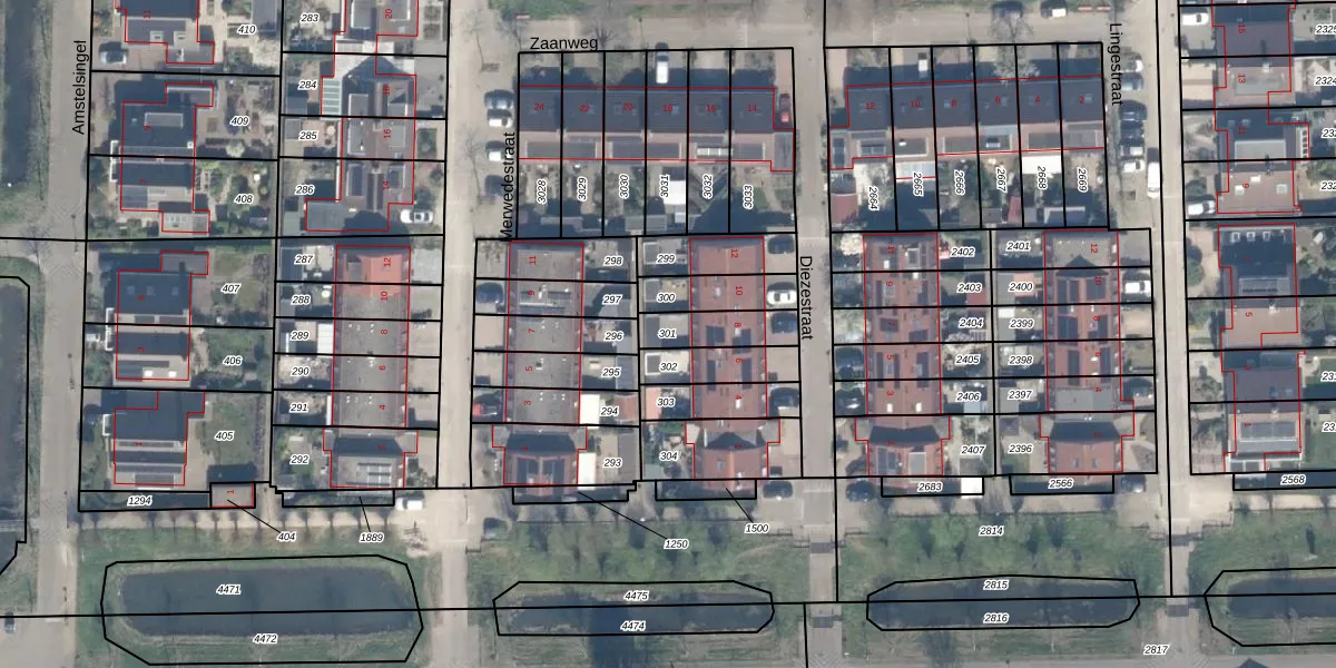 Gebruik de zoekbalk of klik op een perceel om informatie over het perceel te bekijken.