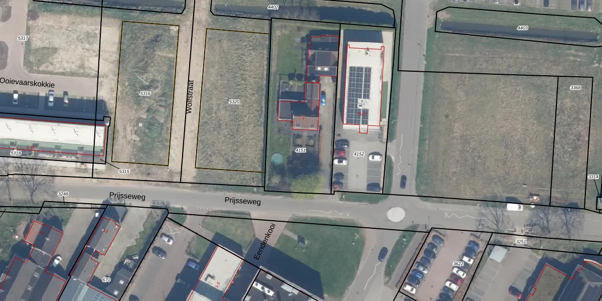 Gebruik de zoekbalk of klik op een perceel om informatie over het perceel te bekijken.
