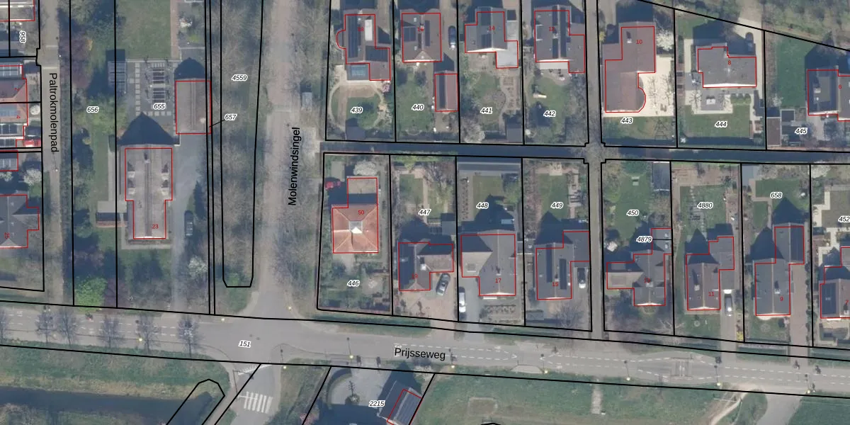 Gebruik de zoekbalk of klik op een perceel om informatie over het perceel te bekijken.