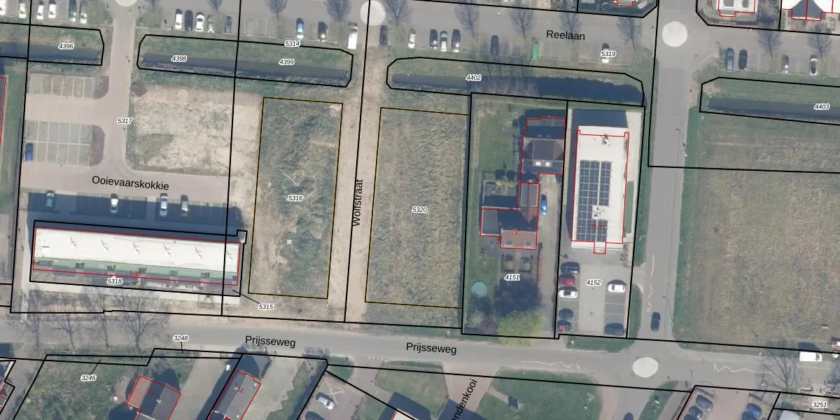 Gebruik de zoekbalk of klik op een perceel om informatie over het perceel te bekijken.