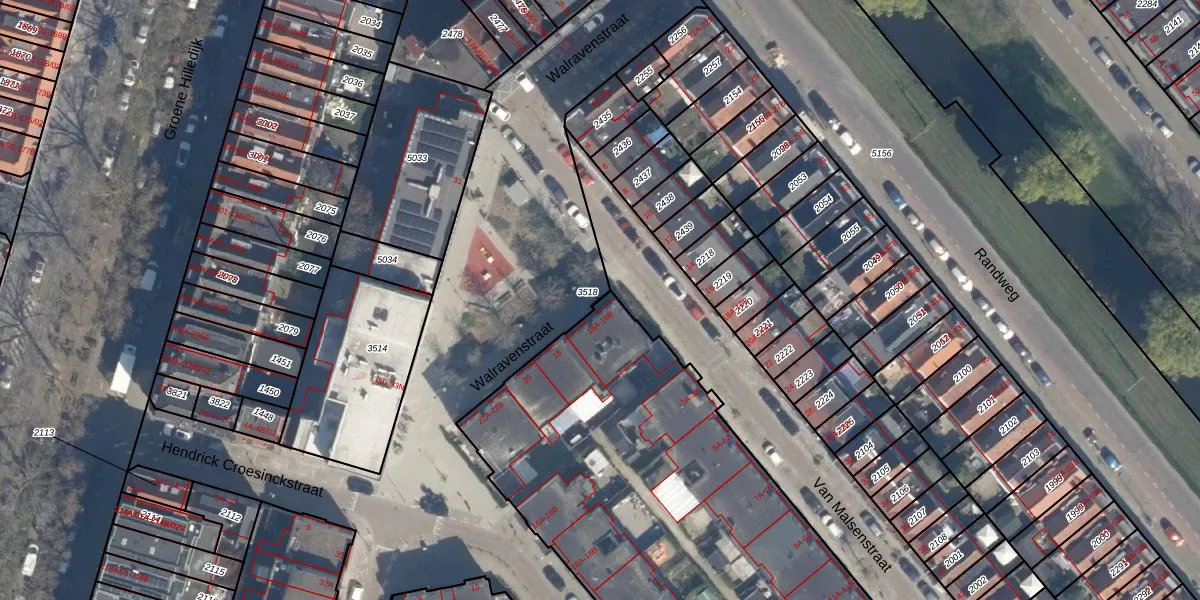 Gebruik de zoekbalk of klik op een perceel om informatie over het perceel te bekijken.