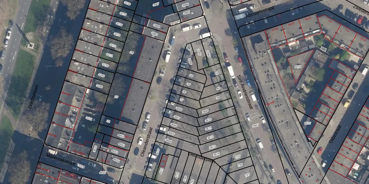 Gebruik de zoekbalk of klik op een perceel om informatie over het perceel te bekijken.